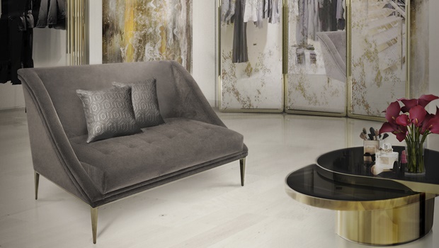 Straight lines furniture is always the best choice for a modern living room. Geisha Sofa by KOKET has a velvet body with a modern shape that can be part of any living room and bring a new modern style at home interiors. The polished brass legs of this sofa design keep the glamorous spirit of the luxury design brand.