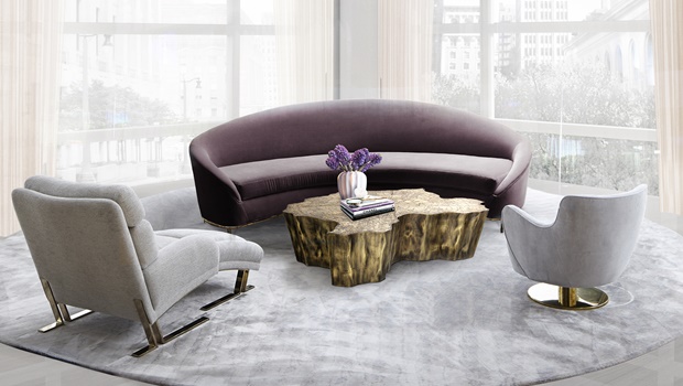 This is one of Room Decor Ideas’ favorite sofas! The glamorous Kelly Sofa by KOKET it’s like the girl next door for a living room. It may look simple, but its delicious curves in the most exquisite velvet and its brass base makes it the perfect sofa design to add to a modern living room full of style!